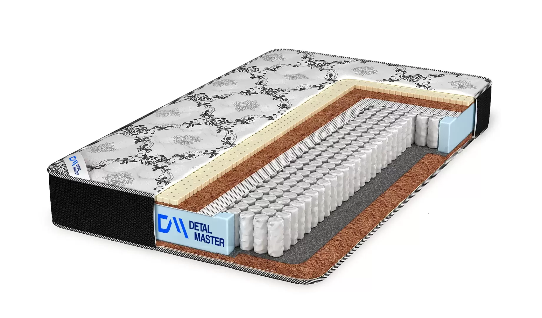 Матрас имеет две стороны жесткости: сторона средней жесткости выполнена с использованием кокоса и натурального латекса. Жесткая сторона представлена слоем войлока и кокосовой койры. Кокос — прочный, хорошо вентилируемый природный материал, обеспечивающий правильную ортопедическую поддержку организму.