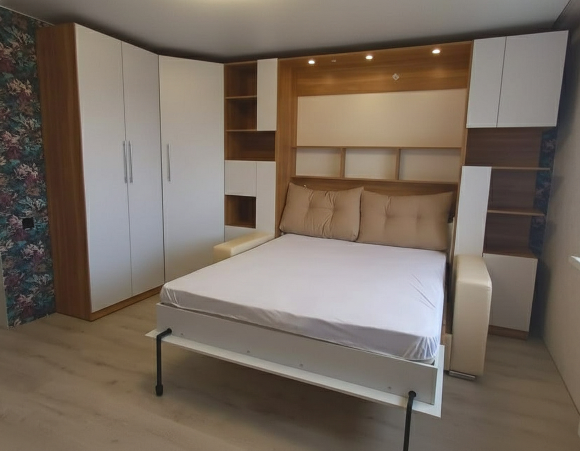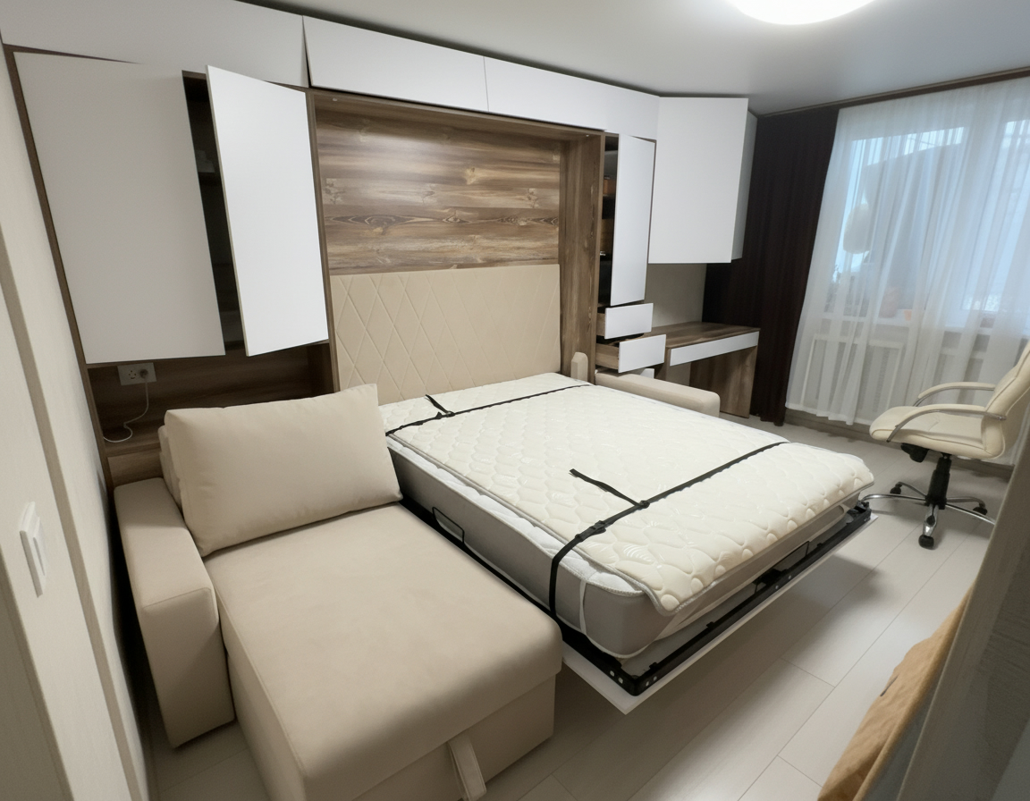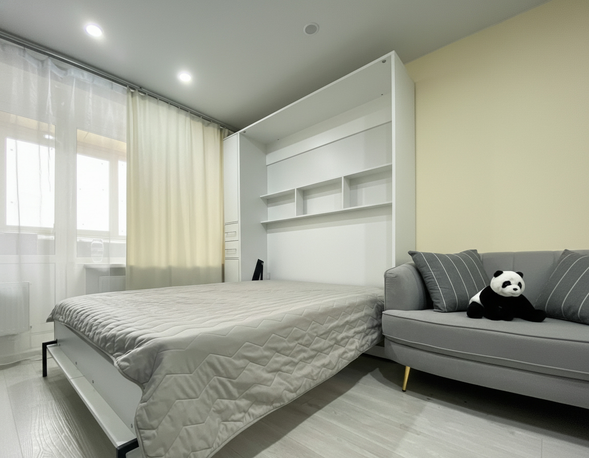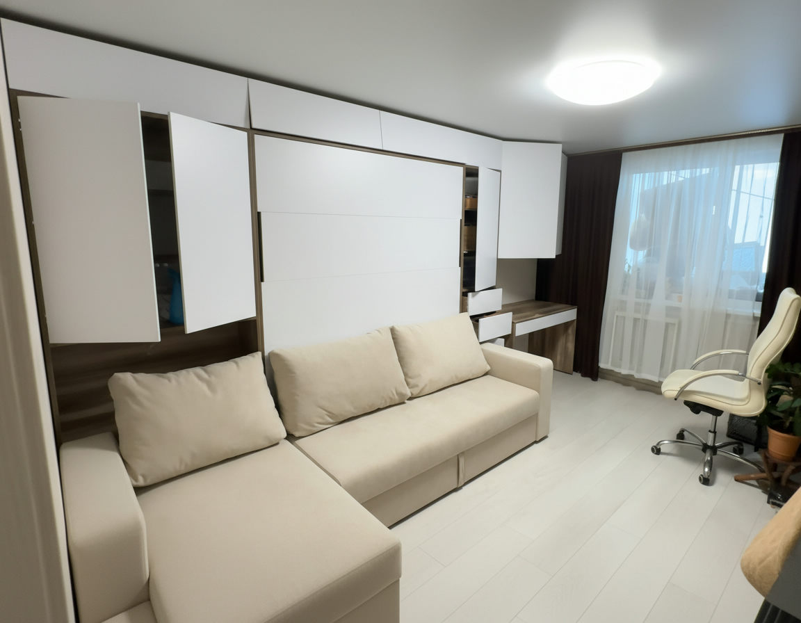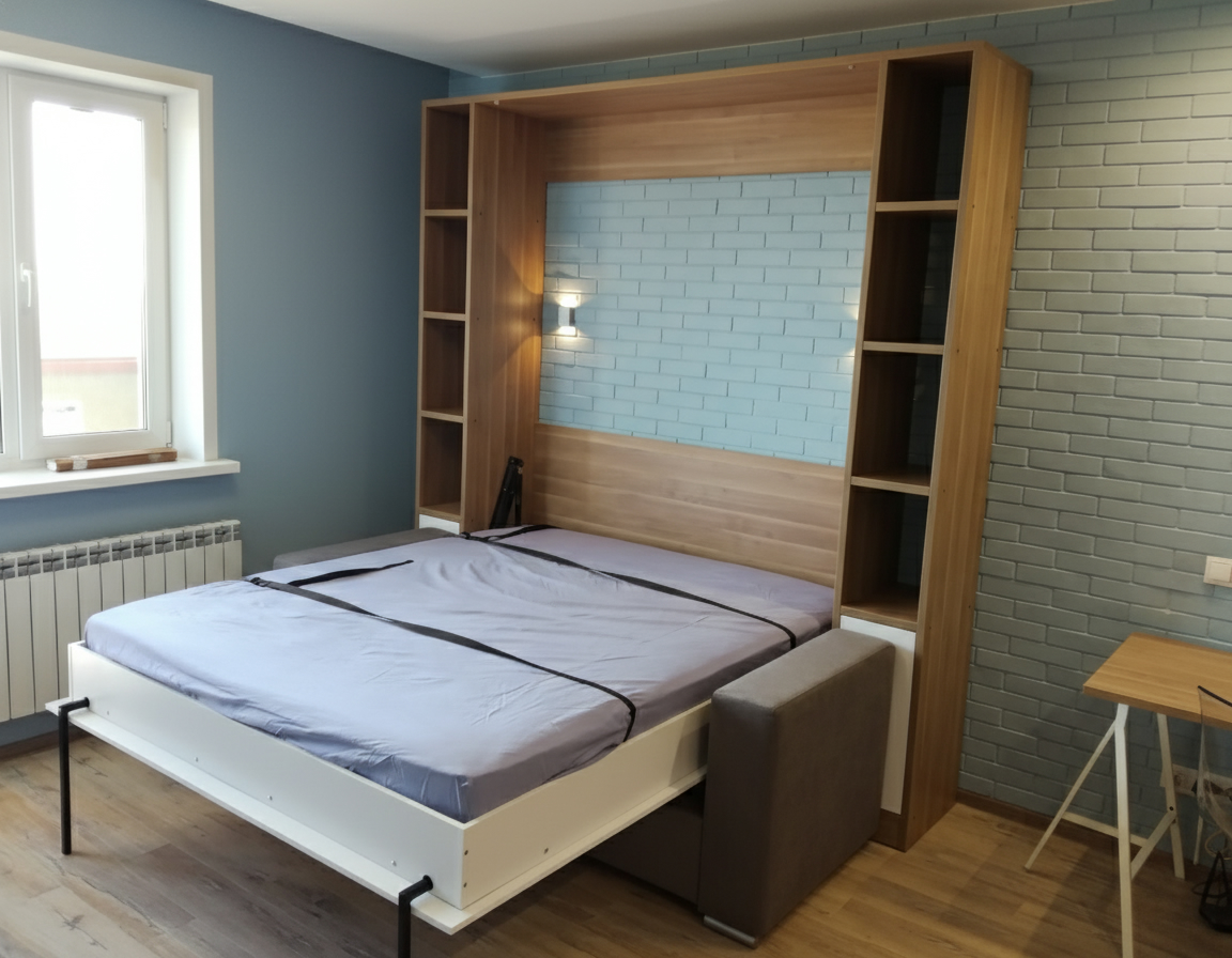 Шкаф-кровать трансформер является отличным решением для небольших квартир, особенно в студиях, где важно максимально использовать доступное пространство. Она позволяет оформить полноценное спальное место и в то же время удобно трансформируется в шкаф, когда не используется для сна. Полный цикл производства и доставка по Якутску