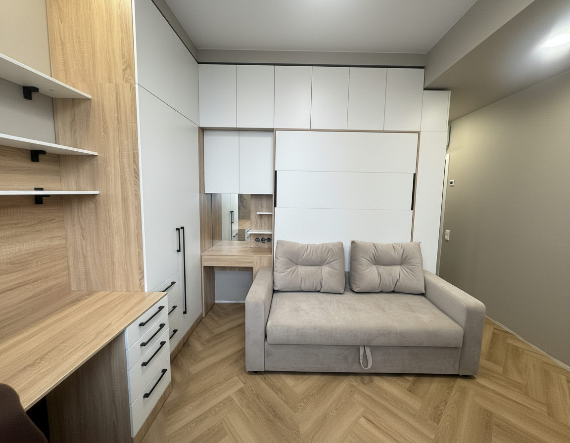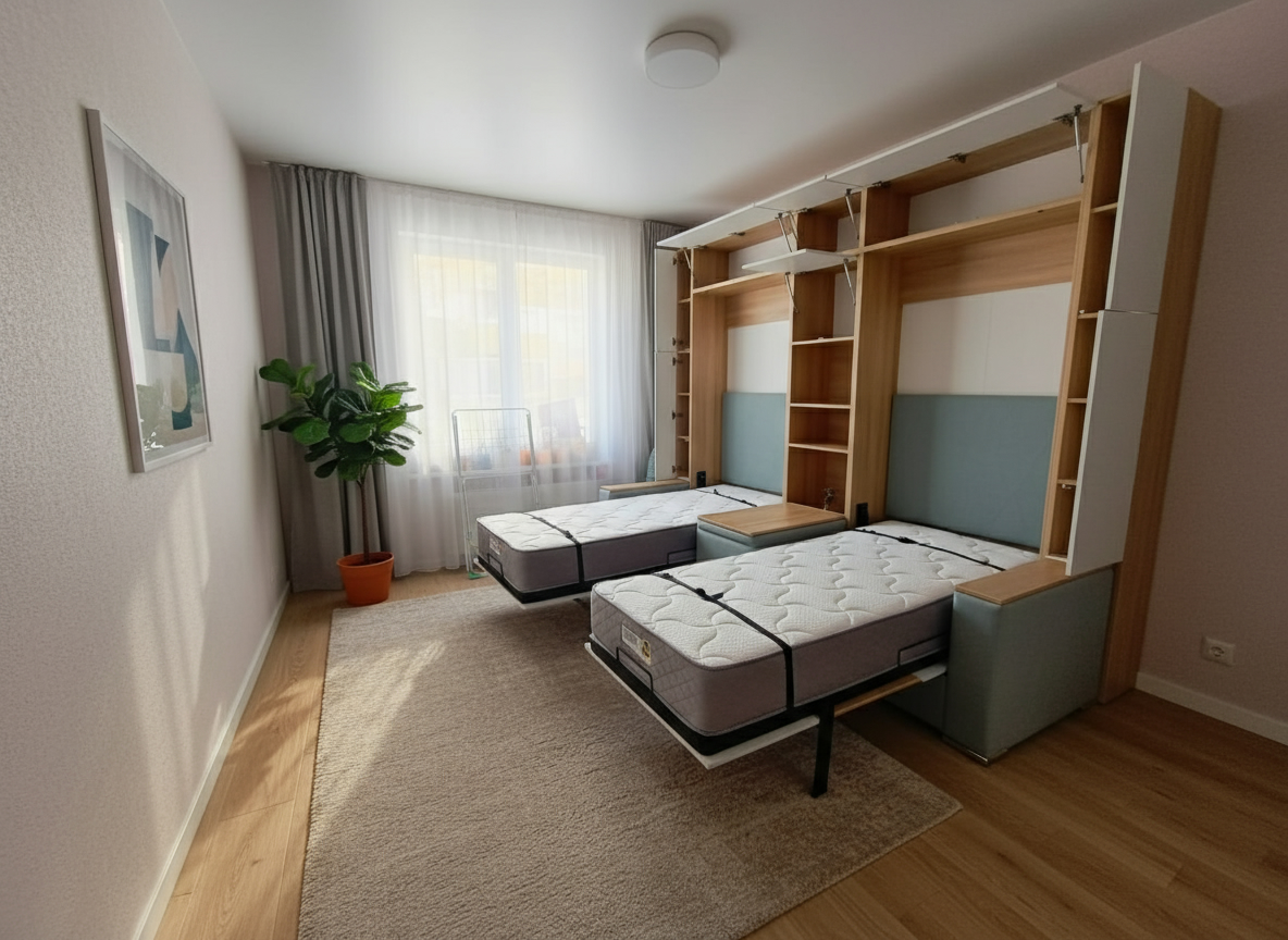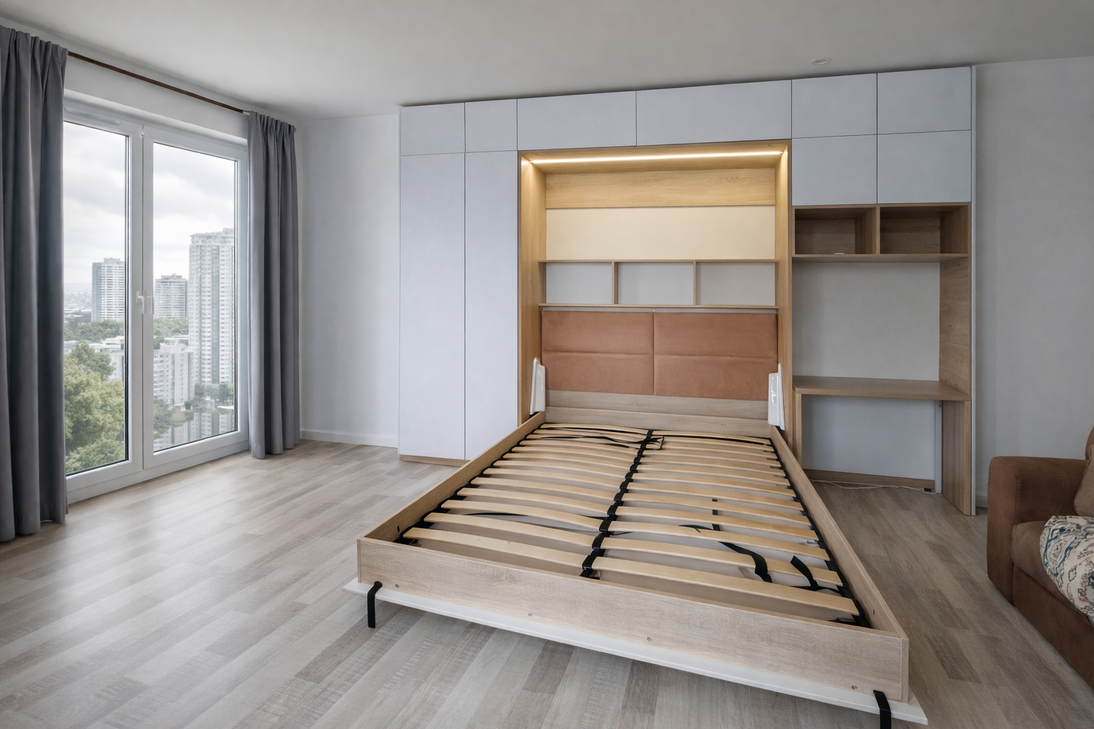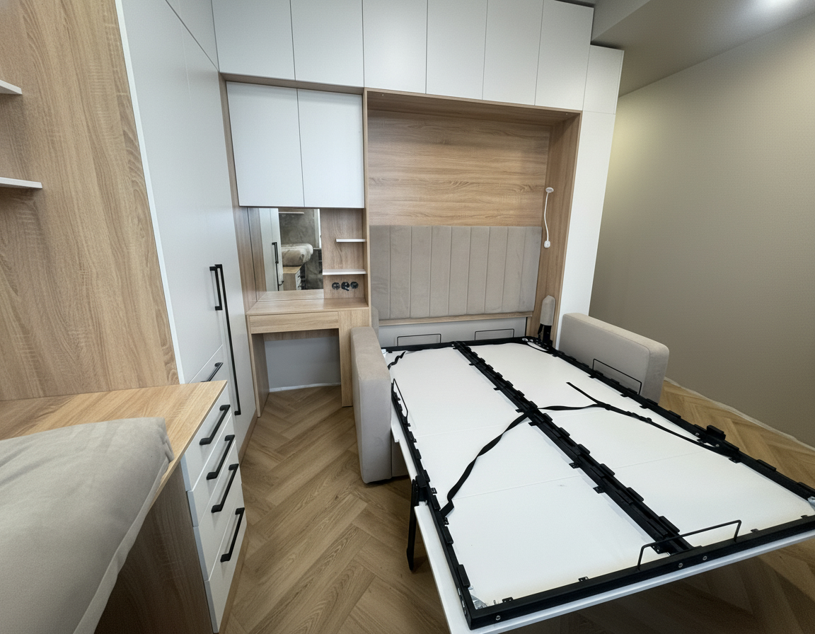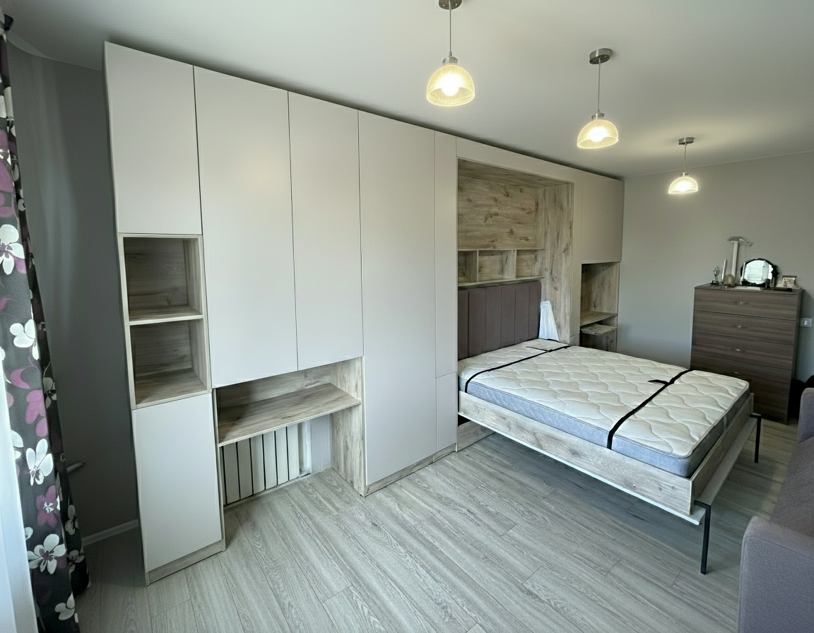 Шкаф-кровать трансформер является отличным решением для небольших квартир, особенно в студиях, где важно максимально использовать доступное пространство. Она позволяет оформить полноценное спальное место и в то же время удобно трансформируется в шкаф, когда не используется для сна. Полный цикл производства и доставка по Якутску